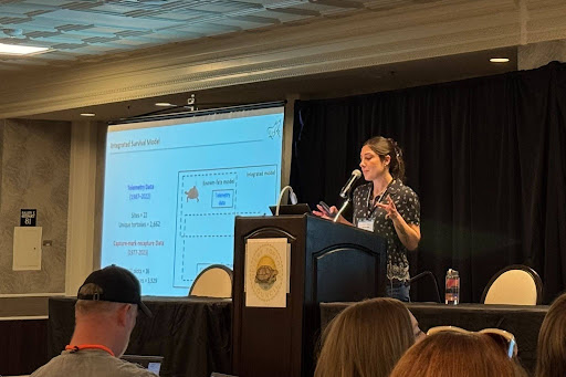 CSP researchers joined scientists, land managers, and other conservation professionals at The Desert Tortoise Council 51st Annual Symposium held in Las Vegas, Nevada, to share the results of these two exciting new analyses. CSP scientist Madi Standen presented results of a multi-disciplinary, integrated approach to stressor quantification and tortoise survival estimation that synthesized diverse demographic datasets spanning more than 50 years. She also previewed a new, web-based tool developed by CSP for exploring trends in survival and stressor exposure across the species range. CSP data scientist Mae Lacey presented the results of an analysis examining the relationship between online sentiment toward the Mojave desert tortoise and outreach efficacy using natural language processing. Leveraging a rich dataset of social media posts (tweets) and online news articles, the team applied AI-based, natural language processing (NLP) techniques to evaluate both sentiment and dominant narratives surrounding the tortoise and provide a set of outreach best practices informed by our results.