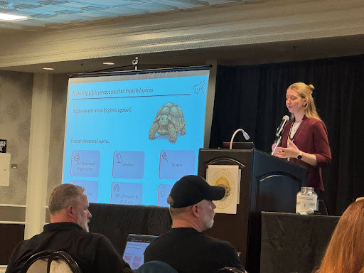 Madi Standen (L) and Mae Lacey (R ) presenting at The Desert Tortoise Council 51st Annual Symposium in Las Vegas, Nevada, February 2026.
